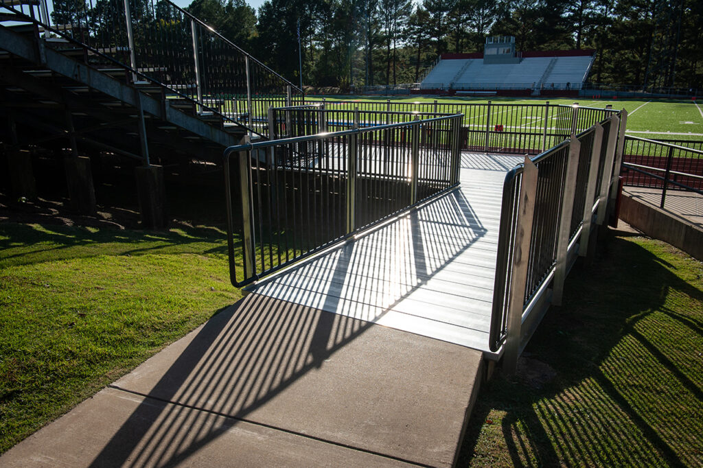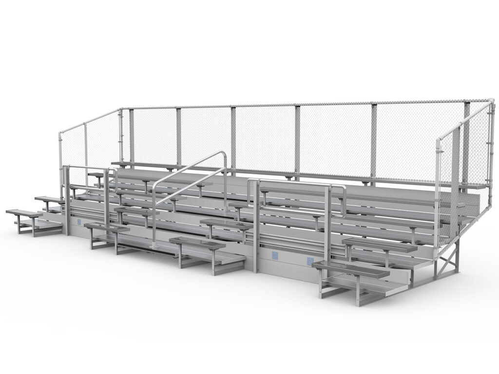 The company to choose for all your recycled aluminum needs, Blecher seating, standard deluxe tip and roll and low rise. All ADA accessible. Tables and players benches too. Contact us for our “Make a Stand” Guide Catalog.